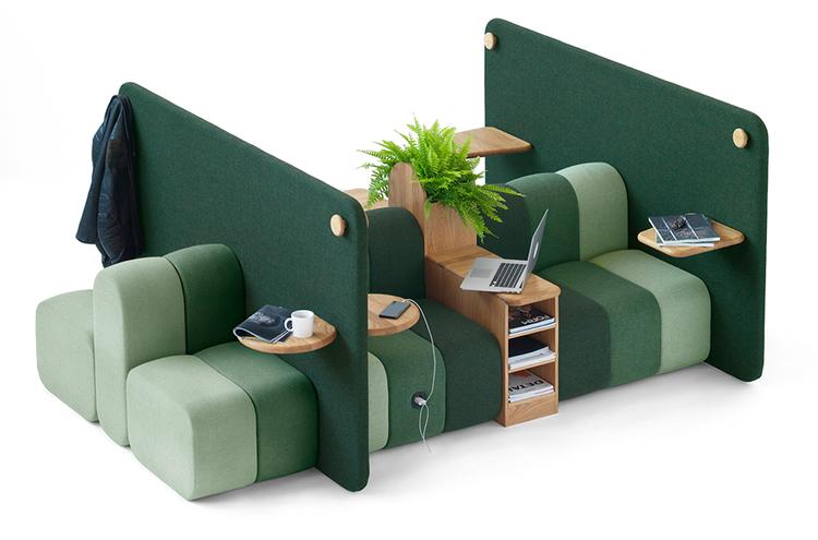 而宜家推出的 MITTZON 米特丛系列,同样聚焦于混合型办公模式下的需求。该系列共有 85 款产品,具备人体工学设计、隔音降噪功能以及自然灵感元素。例如,MITTZON 米特丛隔音屏由 90% 以上的可回收木材纤维作为吸音填充物,既能吸收和阻隔声音,又能防止视觉干扰,为员工打造出所需的隐私空间。同时,系列产品的设计以灵活性为核心,多种产品可协调组合,满足不同活动的办公环境需求,如简短会议、协作活动或独立工作等。部分产品还带有脚轮或可轻松移动,可搭建临时工作或隐私空间,不使用时还能折叠和叠放,充分适应了现代办公空间的多变性。